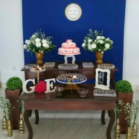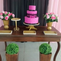 Alugamos Kits Provençais e Rústico com mesas, bandejas, tela mágica, suporte para cortina, suportes para balões que imitam gás hélio e outros.