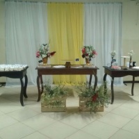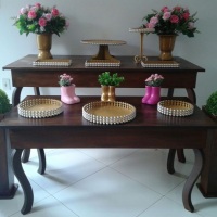 -Kit Provençal e Rústico (mesas, Bandejas, cachepots, vasos com flores, aparadores, banquinho, porta lembrancinhas, vcs de presente)