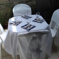 Aluguel de mesas, cadeiras, forros, pratos, talheres, taças para o seu evento.