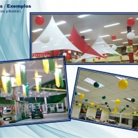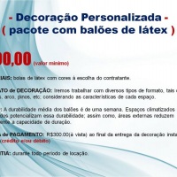 Decoração com balões de latéx, decoração com tecidos e materiais diversos. Decoração personalizada. Inaugurações, promoção de produtos, etc. Evendos empresariais e/ou particulares.