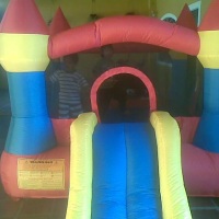 Sua festa esta pronta,é só marcar o dia e nós levamos tudo pronto inclusive o brinquedo, um lindo castelinho inflável com escorregador.