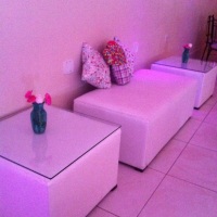 Aluguel de mesas, cadeiras, toalhas, copos, pratos, talheres, louças, taças, fogao, freezer, mesa de vidro, puffs, cadeira de ferro, mesa de madeira. Temos tudo para Sua Festa.